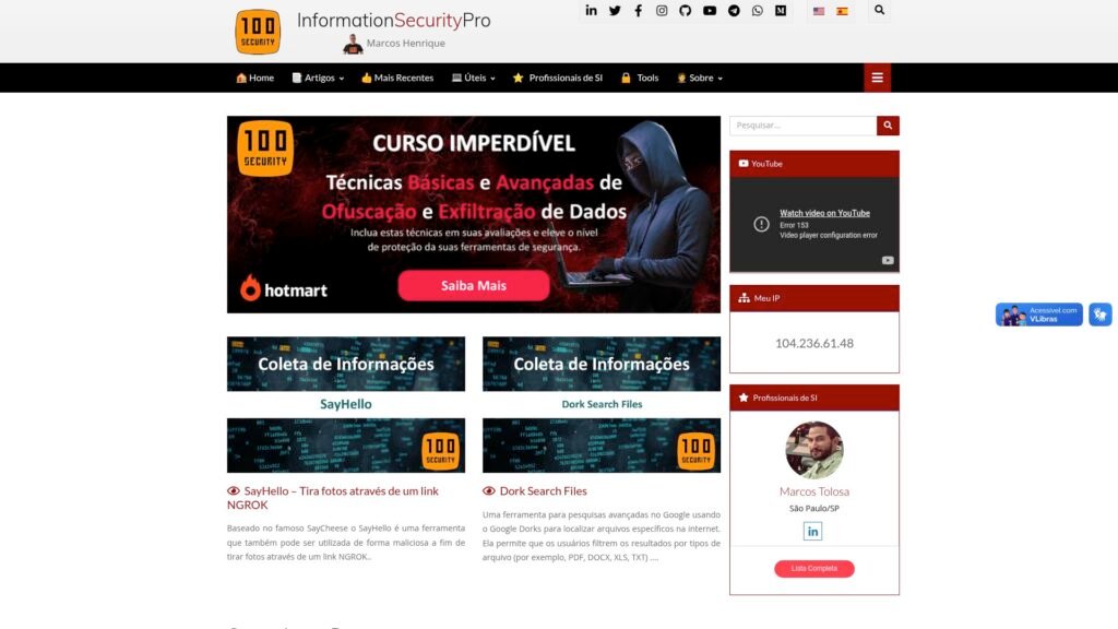 Descrição do site: O site 100SECURITY se apresenta como um portal voltado para segurança da informação, oferecendo artigos, ferramentas, dicas e conteúdos técnicos para profissionais e entusiastas da área. Há categorias dedicadas a temas como Red Team, Blue Team, vulnerabilidades (CVE), sistemas operacionais, infraestrutura, desenvolvimento seguro, OSINT, deep web e cibersegurança em geral. O site reúne guias, tutoriais e recursos como ferramentas de pentest, exploração e análise de vulnerabilidades, além de seções de “Dicas” e “Desenvolvimento” com foco em segurança digital. Também disponibiliza seções de “Carreira” e “Profissionais de SI”, sugerindo um viés profissional e formativo para quem atua ou pretende atuar em segurança da informação. O conteúdo é organizado de forma extensa e técnica, direcionado a um público com conhecimento intermediário ou avançado em segurança digital. Em vez de focar em segurança eletrônica física (câmeras, alarmes etc.), o foco principal do site é segurança digital e cibernética — hacking ético, testes de penetração, vulnerabilidades, ferramentas de exploração, configuração segura e defesa de sistemas. A linguagem e o escopo indicam um espaço de compartilhamento de conhecimento técnico, práticas de segurança e educação na área de TI.