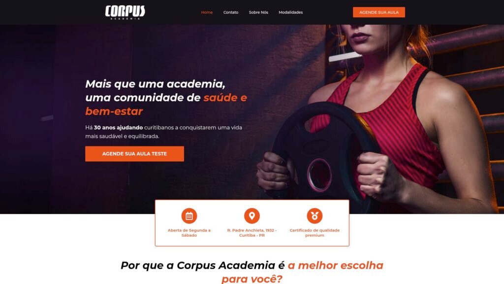 Descrição do site: Plataforma da Academia Corpus, uma academia tradicional localizada em Curitiba que se apresenta como um espaço dedicado à transformação de vidas por meio da atividade física, combinando saúde, bem-estar e atendimento personalizado há mais de 30 anos. Navegando no site, o visitante encontra informações sobre a filosofia da academia, seu compromisso com resultados eficientes e seguros e a ênfase em criar um ambiente acolhedor e motivador para pessoas de diferentes níveis de condicionamento. A página também destaca a metodologia exclusiva desenvolvida em parceria com a Intersport, que integra técnicas de medicina esportiva ao treinamento convencional para oferecer treinos mais eficazes e personalizados. Além de informações institucionais, o site convida os usuários a agendarem aulas experimentais e oferece detalhes de contato e horários de funcionamento, facilitando a interação com potenciais alunos. A Academia Corpus apresenta ainda um mix de serviços e modalidades que visam atender desde quem busca condicionamento físico geral até públicos específicos como gestantes e melhor idade, promovendo uma comunidade focada em qualidade de vida.