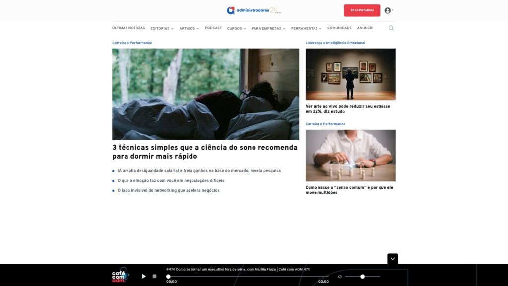 Descrição do site: O site Administradores se posiciona como um dos maiores e mais importantes portais em língua portuguesa voltados a administração, negócios, carreira e empreendedorismo. Ele publica artigos, colunas, matérias sobre gestão, liderança, finanças, marketing, produtividade e desenvolvimento profissional — com uma linguagem acessível e focada tanto em quem já atua no mercado quanto quem busca crescer na carreira. Também oferece uma vertente paga, o serviço Administradores Premium, que disponibiliza cursos, workshops e formações online em diversas áreas de negócios, combinando conhecimentos práticos e teóricos. No site, é possível encontrar conteúdos diversos — desde dicas de carreira, artigos de opinião, até materiais de formação e desenvolvimento de soft skills, sempre com foco em negócios e gestão. A plataforma funciona também como um canal de divulgação para profissionais que desejam publicar suas ideias: colaboradores cadastrados podem submeter artigos, ampliando a diversidade de vozes no portal. Em termos de reputação e legitimidade, o site possui certificado SSL e parece estar ativo há bastante tempo — fatores que apontam para um nível mínimo de segurança técnica. No geral, o site Administradores combina função de revista digital, hub de conhecimento e plataforma de cursos, servindo tanto para atualização profissional quanto para formação contínua no universo da administração e empreendedorismo.