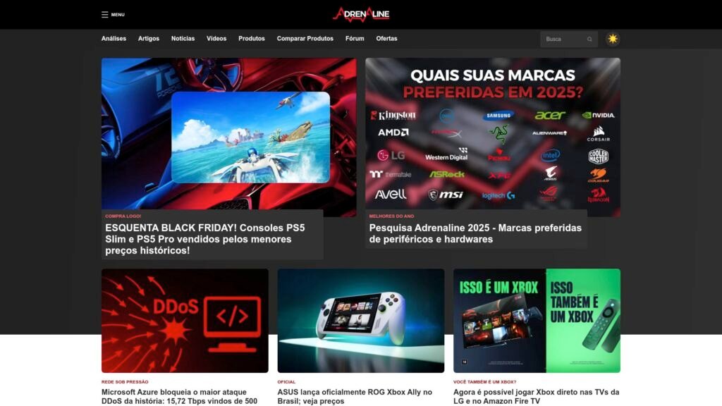 Descrição do site: O site Adrenaline é uma plataforma voltada para o público geek e entusiasta de tecnologia, oferecendo conteúdo atualizado sobre hardware, jogos, cultura pop e notícias relacionadas ao mundo digital. Com um foco especial em análises e reviews, o portal é referência para quem busca informações detalhadas sobre produtos de tecnologia, como placas de vídeo, smartphones, notebooks e acessórios. Além disso, o site conta com matérias sobre lançamentos no universo dos jogos, dicas de desempenho e guias de compra. A seção de notícias abrange desde inovações tecnológicas até eventos da indústria. A comunidade também é um dos pilares, com fóruns e interações entre os usuários, criando um espaço para troca de experiências. A Adrenaline também realiza testes de produtos e oferece comparações, ajudando os consumidores a tomar decisões informadas.