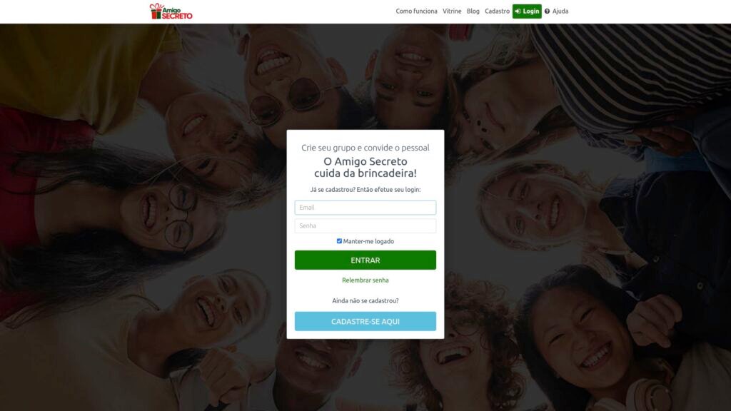 Descrição do site: O site Amigo Secreto oferece uma solução online para organizar trocas de presentes em grupo de forma prática — desde o tradicional “amigo oculto” até confraternizações corporativas. A plataforma permite criar um grupo com participantes, definir valores, prazos e até desenvolver listas de desejos para tornar a brincadeira mais personalizada. Ela facilita o sorteio eletrônico dos nomes, envia convites por e-mail e permite que os participantes consultem quem tiraram com privacidade. A interface exibe funcionalidades como chat anônimo, postagens de mensagens no mural do grupo e um sistema de vetos para quem não deseja tirar determinados participantes. O layout é direto e voltado para acessibilidade, com foco em simplicidade e praticidade para usuários de todas as idades. Em resumo, o Amigo Secreto funciona como uma ferramenta digital eficiente para transformar a brincadeira de troca de presentes em uma experiência moderna, colaborativa e acessível.