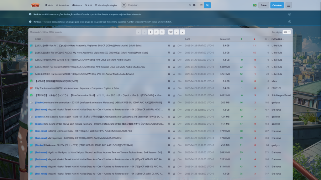 Descrição do site: O site AniRena é uma plataforma online voltada ao compartilhamento de conteúdos relacionados à cultura japonesa, especialmente animes, mangás, músicas e outros materiais digitais. Ele funciona principalmente como um tracker de torrents, permitindo que usuários encontrem e baixem arquivos compartilhados pela própria comunidade. Criado ainda nos anos 2000, o site se consolidou como um dos mais antigos do nicho, reunindo uma base ativa de usuários interessados em entretenimento asiático. Sua proposta gira em torno da colaboração entre membros, que disponibilizam conteúdos e participam de fóruns e discussões dentro da plataforma. A interface costuma ser simples e funcional, focada na listagem de arquivos, estatísticas de download e organização por categorias, facilitando a navegação para quem busca conteúdos específicos. Além disso, o site oferece recursos típicos de trackers, como perfis de usuários e sistemas de compartilhamento baseados em upload e download. Com o passar do tempo, o AniRena manteve relevância dentro da comunidade otaku, apresentando tráfego consistente e presença internacional. Sua longevidade também contribui para a percepção de confiabilidade entre usuários mais antigos. Por outro lado, por operar com torrents de conteúdos protegidos por direitos autorais, o site está frequentemente associado à distribuição não oficial de mídia, o que pode envolver questões legais e riscos de segurança digital. De forma geral, o AniRena é um espaço tradicional dentro do universo de compartilhamento de anime, oferecendo variedade e interação comunitária, mas exigindo cautela quanto à legalidade e à segurança ao acessar ou baixar arquivos.