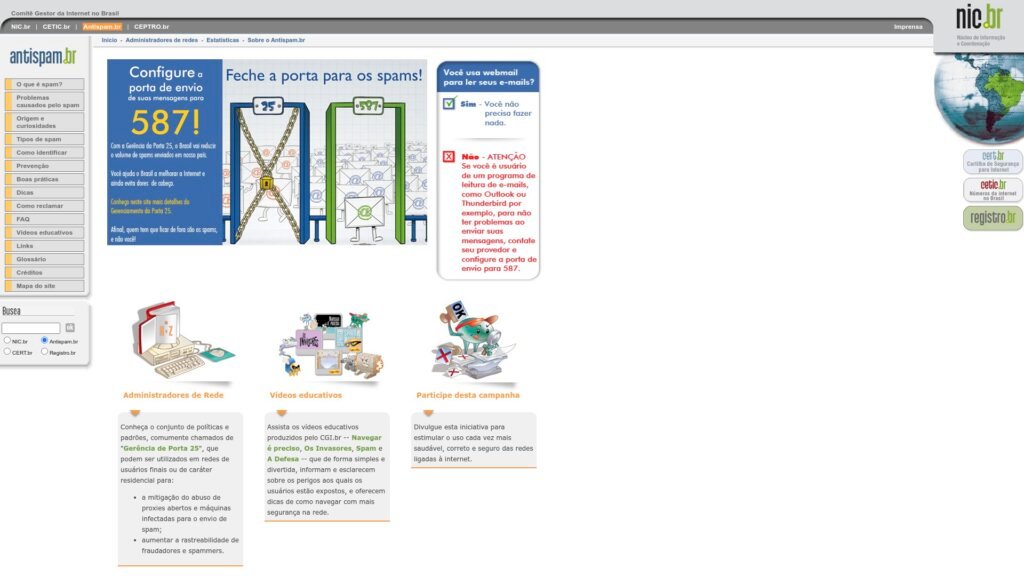 Descrição do site: O site Antispam.br — mantido pelo CGI.br (por meio da CT‑Spam) — funciona como um portal de referência técnica e educativa sobre spam e segurança na internet no Brasil. Ele oferece conteúdo voltado tanto para usuários comuns quanto para administradores de rede, explicando o que é spam, suas origens, os diferentes tipos e os riscos que traz — como fraudes, malwares e sobrecarga de servidores. Também traz orientações práticas de prevenção: uso de filtros, boas práticas de envio de e-mails, configuração segura de servidores e recomendações técnicas como SPF, DKIM e “gerência de Porta 25”. Para tornar a informação mais acessível, o site disponibiliza vídeos educativos explicando de forma simples os perigos da internet e mostrando como se proteger. Além disso, o portal alerta para golpes que usam indevidamente o nome “Antispam.br”, informando que ele não envia softwares para download nem solicita dados pessoais — ou seja, qualquer mensagem que prometa “limpeza de vírus/spam” em nome do site deve ser imediatamente considerada falsa. Em resumo, o Antispam.br é uma fonte confiável de orientação técnica e educativa, destinada a fortalecer a segurança digital no Brasil e conscientizar usuários e administradores sobre os perigos ligados ao spam.