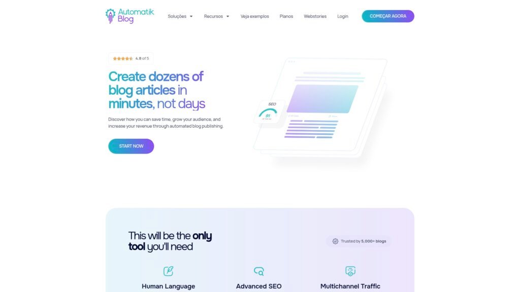 Descrição do site: O site Automatik Blog se apresenta como uma plataforma que usa inteligência artificial (IA) para automatizar a criação e publicação de conteúdo em blogs, oferecendo facilidades como geração de artigos com linguagem fluida, texto otimizado para SEO e integração com WordPress. Ele promete permitir que usuários produzam dezenas, centenas ou mesmo milhares de artigos por mês com pouco esforço, ideal para quem busca volume e consistência de postagens. A Automatik Blog oferece também recursos adicionais, como inserção automática de links internos, acesso a bancos de imagens, conversão de texto em áudio, e a funcionalidade de transformar vídeos em conteúdo escrito — tudo com o objetivo de facilitar a gestão de blogs e ampliar alcance em múltiplas frentes. A proposta é atrair desde donos de blogs pessoais e lojas virtuais até agências de marketing e portais de notícias, oferecendo planos com diferentes capacidades de produção. Apesar de o site ter certificado de segurança (HTTPS) e registro ativo por mais de um ano, ferramentas públicas de verificação indicam que a reputação da Automatik Blog ainda é “relativamente nova”, sugerindo cautela — especialmente no que se refere à verificação da empresa por trás do serviço. Em resumo, o Automatik Blog funciona como uma “fábrica de conteúdo por IA”, com o objetivo de tornar mais fácil, rápido e barato gerar e manter blogs atualizados — mas quem usar deve avaliar bem os resultados e considerar revisão humana dos textos.