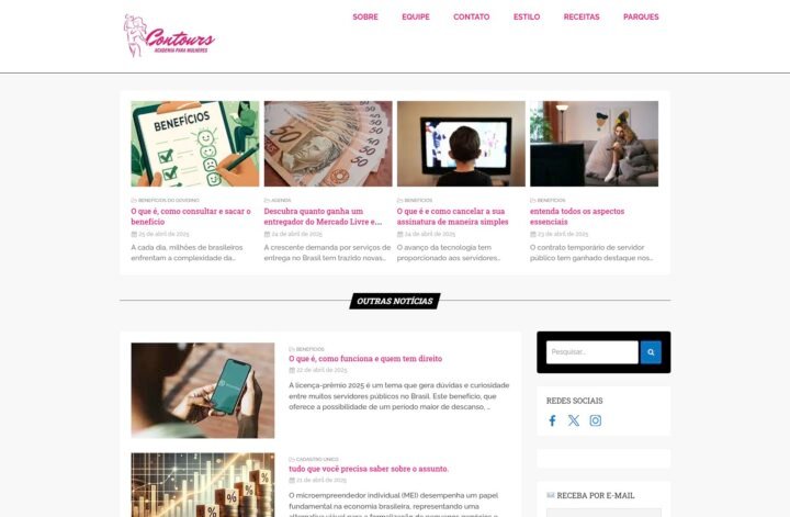 Descrição do site: O site da Contours, que é uma rede de academias femininas voltada especialmente para o público feminino que busca condicionamento físico, bem-estar e qualidade de vida em um ambiente dedicado somente a mulheres, com foco em treinos funcionais, circuitos de exercícios e aulas variadas adaptadas às necessidades delas. A plataforma reflete a proposta da marca de oferecer treinos eficientes e dinâmicos, muitas vezes com métodos de circuito de cerca de 30 minutos que combinam musculação e exercícios funcionais num formato prático para rotinas atarefadas, além de possíveis serviços complementares como aulas de pilates, zumba ou acompanhamento nutricional, dependendo da unidade. A Contours é uma franquia internacional presente em várias cidades do Brasil, com diversas unidades espalhadas em bairros de São Paulo e outras capitais, todas focadas em criar um espaço seguro e motivador para mulheres cuidarem de sua saúde física. A intimidade e o conforto de treinar apenas entre mulheres, sem presença masculina na academia, é um dos pontos que a marca realça em sua comunicação e filosofia de atendimento, reforçando a ideia de comunidade e apoio ao estilo de vida ativo feminino.