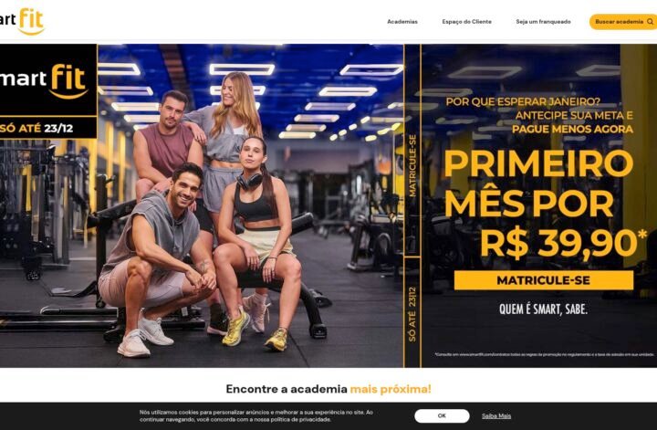 Descrição do site: Página oficial da Smart Fit, a maior rede de academias da América Latina, conhecida por democratizar o acesso ao fitness de alto padrão com planos acessíveis e uma vasta presença física com mais de 1.500 unidades em vários países. A plataforma é projetada para ajudar visitantes a encontrar e escolher a academia mais próxima, visualizar planos de assinatura e explorar os serviços oferecidos, como áreas de musculação e cardio, salas de aulas coletivas e benefícios adicionais como cadeira de massagem e funcionalidades do Smart Fit App. Através do site, potenciais alunos podem conhecer modalidades de treino, planos como o Black com acesso ilimitado às unidades e recursos digitais que acompanham o progresso físico. A Smart Fit valoriza comodidade e acessibilidade, enfatizando a simples contratação online e a vasta cobertura das academias para treinar em diferentes localidades. Além disso, o site integra informações sobre tecnologias e serviços complementares, como o aplicativo para treinos personalizados e acompanhamento, reforçando a proposta de combinar experiência física e digital para apoiar a saúde e bem-estar dos membros.