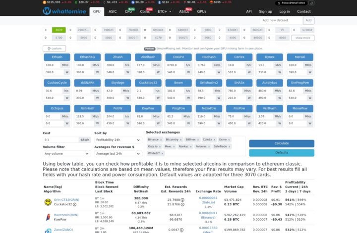 Link para o site: WhatToMine
