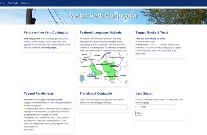 Descrição do site: O site Verbix é um conjugador de verbos online focado em exibir as formas conjugadas de verbos em dezenas de línguas, servindo como uma ferramenta prática para estudantes, professores ou curiosos que querem ver como um verbo se flexiona em diferentes tempos, modos e pessoas. Ele permite digitar um verbo e obter uma tabela completa de conjugações para línguas como espanhol, francês, italiano, alemão, japonês e muitas outras, incluindo opções menos comuns e até alguns idiomas regionais ou históricos. O serviço é oferecido gratuitamente e complementa sua função com informações auxiliares como textos exemplares e materiais linguísticos extras. O projeto Verbix também está ligado a uma organização sem fins lucrativos que visa promover a diversidade linguística e está disponível tanto na versão web quanto como software para sistemas como Windows. A interface é simples e objetiva, focada na rapidez da consulta, tornando o site útil para quem estuda línguas estrangeiras ou precisa de uma referência rápida de formas verbais sem recorrer a gramáticas impressas.