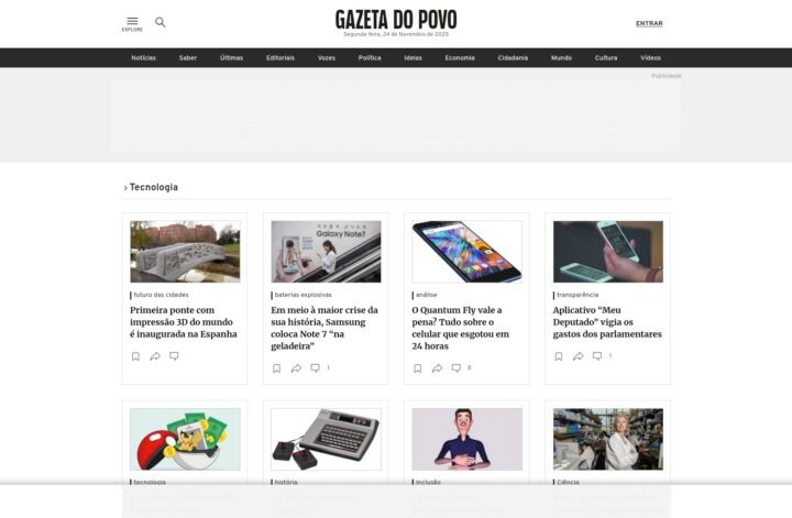 Descrição do site: O site iG – Tecnologia é a seção de tecnologia do portal iG, oferecendo uma mistura equilibrada entre notícias sobre inovação, telecomunicações, internet e tendências digitais. A página publica reportagens sobre inteligência artificial, avanços em redes 5G, segurança cibernética e novos dispositivos, sempre com uma linguagem acessível ao público geral. Também há dicas práticas para usuários, guias de compra e tutoriais para lidar com gadgets e software, facilitando o dia a dia de quem busca se manter atualizado. Além de conteúdo noticioso, o site aborda políticas de tecnologia, mostrando como decisões regulatórias afetam o mercado nacional. Em algumas matérias, há ênfase em iniciativas tecnológicas do próprio iG, como a adoção de IA para gerar resumos de notícias. A seção Dicas complementa a cobertura, trazendo sugestões para otimizar o uso de aparelhos e aplicativos. Com isso, o portal se posiciona como fonte confiável para acompanhar as transformações digitais no Brasil e no mundo.