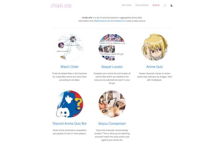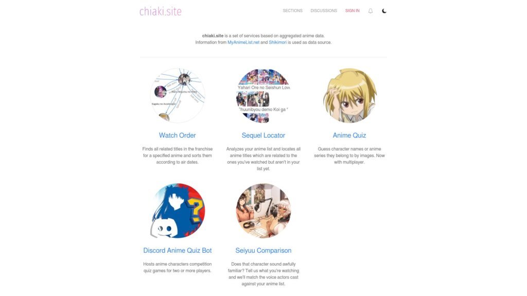 Descrição do site: O Chiaki Site é uma plataforma online voltada ao universo dos animes, funcionando como um conjunto de ferramentas baseadas em dados agregados de outras bases conhecidas, como MyAnimeList e Shikimori. O site não é um serviço de streaming, mas sim um hub informativo e interativo que auxilia usuários a explorar conteúdos, organizar listas e descobrir novas obras relacionadas aos seus interesses. Entre seus principais recursos, estão ferramentas que ajudam a identificar a ordem correta para assistir séries, localizar continuações ou spin-offs e analisar relações entre diferentes títulos de um mesmo universo. A plataforma também oferece funcionalidades mais dinâmicas, como quizzes sobre personagens e animes, incluindo modos multiplayer e integração com bots para comunidades, como no Discord. Outro diferencial é a possibilidade de comparar dubladores (seiyuu) e relacionar vozes entre personagens de diferentes obras, enriquecendo a experiência para fãs mais atentos. Seu funcionamento é totalmente online e gratuito, sendo acessível diretamente pelo navegador sem necessidade de instalação. O site apresenta uma proposta simples e prática, focada mais em utilidade e organização de informações do que em design complexo ou rede social. Ele costuma ser utilizado principalmente por fãs que desejam acompanhar franquias longas ou entender melhor a cronologia de animes. No geral, o Chiaki Site se posiciona como uma ferramenta complementar para consumo de anime, ajudando na descoberta e organização de conteúdo. Assim, sua principal função é servir como guia e apoio para quem navega pelo vasto catálogo de produções japonesas.