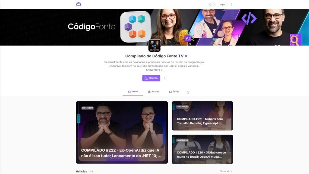 Descrição do site: Página oficial do podcast Compilado do Código Fonte TV, apresentado por Gabriel Fróes e Vanessa Weber, programadores que também comandam um canal popular no YouTube. Nele, são publicados episódios semanais que resumem as principais notícias e tendências do mundo da programação, tecnologia e desenvolvimento de software. Cada episódio traz temas como inteligência artificial, linguagens de programação, frameworks, segurança e novidades do ecossistema tech contemporâneo. Além do formato de áudio, os compilados também estão disponíveis em vídeo, conectando com o conteúdo do Código Fonte TV. O site exige login para acesso a alguns conteúdos e incentiva a inscrição por e-mail, mantendo a privacidade do usuário. Também promove uma área de assinantes, que têm acesso a episódios exclusivos. A apresentação é feita de forma leve e bem-humorada, tornando assuntos complexos mais acessíveis para desenvolvedores de diferentes níveis. É um ponto de encontro virtual para quem quer se manter informado sobre tecnologia com profundidade, em companhia de duas vozes expert na área.