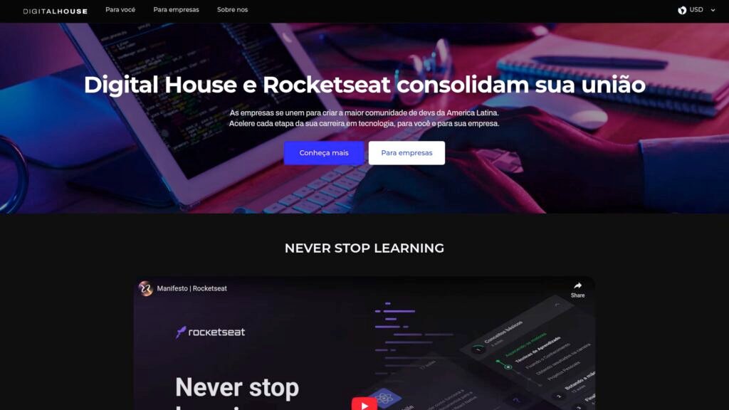 Descrição do site: O site Digital House é uma plataforma de educação online voltada para o ensino de habilidades digitais e tecnológicas, oferecendo cursos nas áreas de programação, design, marketing digital, análise de dados e negócios. Com foco na formação prática, a Digital House busca preparar os alunos para os desafios do mercado de trabalho atual, proporcionando uma metodologia interativa e cursos desenvolvidos em parceria com empresas renomadas. A plataforma oferece tanto cursos presenciais quanto online, adaptados para diferentes níveis de conhecimento, desde iniciantes até profissionais que buscam especialização. Além de uma abordagem de ensino que inclui projetos reais e acompanhamento personalizado, a Digital House também oferece certificações que agregam valor ao currículo dos alunos, ajudando-os a se destacarem na carreira.