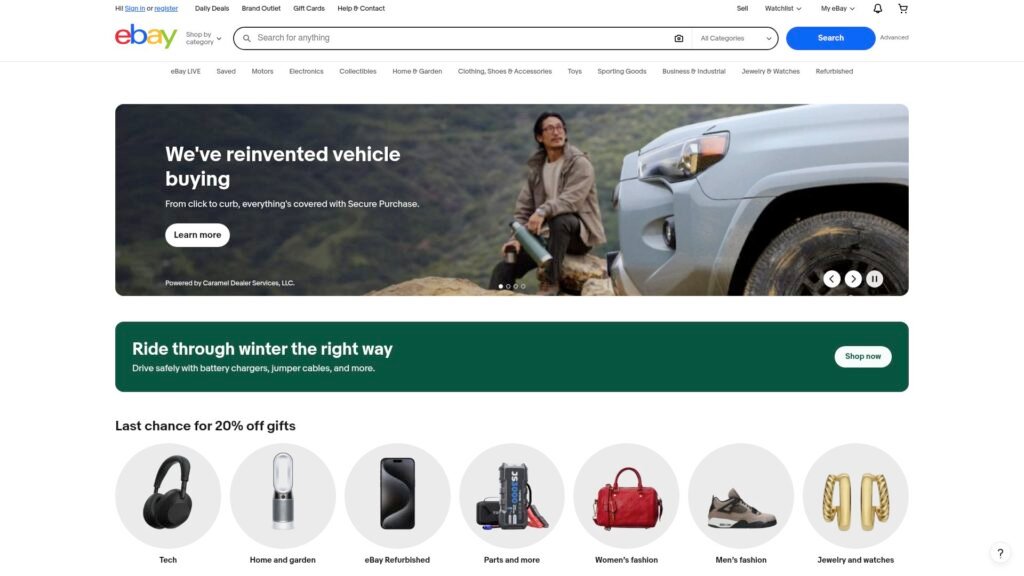 Descrição do site: O site eBay é um dos maiores e mais antigos marketplaces de comércio eletrônico do mundo, criado em 1995 e reconhecido internacionalmente por conectar milhões de compradores e vendedores em um ambiente global de compras e vendas online. Ele funciona como uma plataforma onde qualquer pessoa ou empresa pode listar produtos — novos, usados ou raros — em formatos de preço fixo ou leilão, permitindo ofertas competitivas e uma enorme variedade de categorias, de eletrônicos a colecionáveis. Usuários podem navegar entre milhões de itens, comparar preços e concluir transações de forma segura, com mecanismos de proteção para comprador e vendedor integrados ao sistema. Além de atuar via navegador, o eBay possui apps móveis populares que facilitam compras e vendas em qualquer lugar, com opções de pagamento e envio internacional. A presença global da plataforma permite que produtos de diversos países sejam acessados por consumidores de todo o mundo, o que faz do eBay um espaço importante tanto para quem busca barganhas quanto para colecionadores e pequenos empreendedores. Ao longo dos anos, o site evoluiu incluindo recursos modernos de busca, ferramentas de gestão de vendas e parcerias com outras plataformas para expandir visibilidade de anúncios, mantendo-se relevante no crescente mercado do comércio eletrônico.