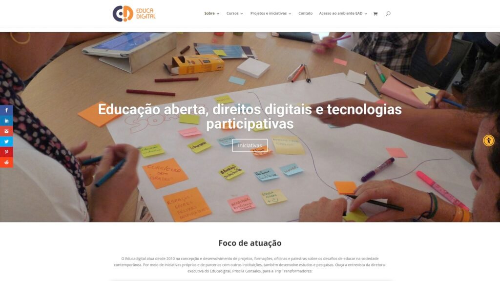 Descrição do site: O site Educadigital é uma plataforma dedicada a promover a educação aberta e o uso de tecnologias digitais para a democratização do conhecimento. Ele oferece informações sobre projetos, cursos e iniciativas voltadas à formação de educadores e estudantes, com foco na criação, uso e compartilhamento de Recursos Educacionais Abertos (REA). A página também aborda temas como cultura digital, inovação pedagógica e direitos humanos, incentivando práticas colaborativas no desenvolvimento de conteúdos educativos. Além de disponibilizar materiais educativos, o portal apoia a integração de tecnologias livres e formatos abertos em processos de ensino e aprendizagem. O site apresenta notícias, artigos e guias que auxiliam educadores a implementar metodologias inclusivas e acessíveis. Também fornece informações sobre eventos, parcerias e campanhas de financiamento coletivo voltadas à construção de ambientes digitais educacionais. A navegação é organizada para facilitar o acesso a diferentes recursos, conectando usuários a cursos, oficinas e projetos práticos. A plataforma busca, assim, contribuir para uma educação mais equitativa, estimulando a participação ativa de professores, alunos e comunidades. Dessa forma, o Educadigital atua como um ponto central de referência para quem deseja aprender e ensinar de forma inovadora e colaborativa.