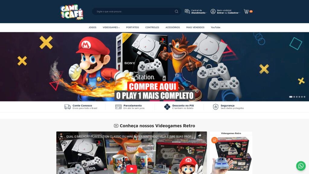 Descrição do site: O Game com Café é uma loja online brasileira especializada na venda de videogames e consoles retrô, como Atari, Mega Drive e Super Nintendo. Fundada em 2013 por um empreendedor apaixonado por jogos clássicos, a loja tem como objetivo proporcionar nostalgia aos entusiastas de games antigos em todo o Brasil. Além de oferecer uma variedade de produtos relacionados ao universo dos videogames retrô, o Game com Café mantém uma presença ativa nas redes sociais, compartilhando novidades e interagindo com sua comunidade de clientes e fãs.