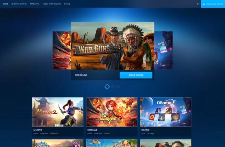 Descrição do site: O site da Gameforge é uma plataforma dedicada à publicação e operação de jogos digitais, especialmente focada em títulos online multiplayer e games de navegador. A página apresenta o portfólio da empresa, reunindo jogos populares de diferentes gêneros, como MMORPGs e estratégias espaciais, muitos deles gratuitos para jogar. O modelo adotado é o free-to-play, permitindo acesso livre aos jogos com opções de compras internas para itens e melhorias. O site também destaca a comunidade global de jogadores, oferecendo suporte em diversos idiomas e regiões. Além disso, há seções institucionais que mostram a história da empresa, sua atuação internacional e seus valores no mercado de games. A interface é voltada para facilitar o acesso aos jogos, downloads e gerenciamento de contas. A Gameforge também evidencia atualizações constantes, eventos e novidades dos seus títulos, mantendo os usuários engajados. No geral, o site funciona como um hub central para jogadores explorarem, acessarem e acompanharem jogos online mantidos pela empresa.