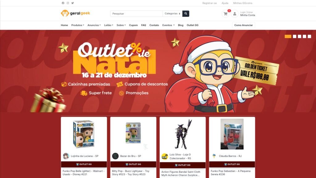 Descrição do site: O site Geral Geek é um marketplace brasileiro especializado em produtos da cultura geek e nerd, focado especialmente em itens colecionáveis como Funko Pops, action figures, Lego, jogos, cards, camisetas e produtos temáticos de séries, filmes e quadrinhos organizados por categorias que facilitam a busca e a compra. Ele reúne ofertas de diversos vendedores dentro de uma mesma plataforma, destacando promoções, cupons e seções como Outlet GG e pré-venda, permitindo comparar preços e encontrar itens raros ou exclusivos. A navegação inclui filtros por tipo de produto e links para contato, FAQ e informações sobre como anunciar, buscando atender tanto compradores quanto quem quer vender seus produtos geek no site. A Geral Geek se apresenta como uma comunidade de comercio voltada ao público fã de cultura pop, com foco em transparência e experiência de compra no universo geek. Apesar de o domínio existir há vários anos e ter conexão segura via HTTPS, não há muitas avaliações de consumidores em grandes plataformas de reputação online, o que sugere que experiências podem variar e recomenda cautela ao comprar. Em resumo, o Geral Geek funciona como um ponto de encontro digital para entusiastas de colecionáveis e artigos nerd, combinando ofertas de diferentes lojistas em um ambiente temático e segmentado para esse público específico.