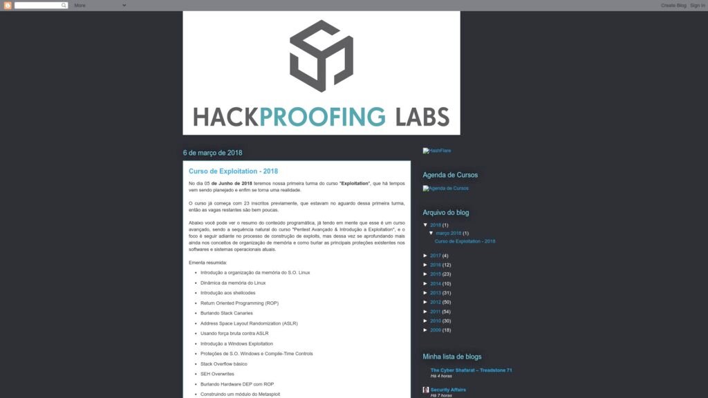 Descrição do site: O HackProofing Labs é um blog mantido por um especialista brasileiro em segurança da informação, abordando temas como auditoria, testes de invasão, análise forense, vulnerabilidades e boas práticas de proteção digital. O conteúdo alterna entre artigos técnicos, listas de leitura recomendada para quem deseja se aprofundar, reflexões sobre segurança e recomendações práticas para quem deseja proteger sistemas ou aprender hacking ético. Há também registros de treinamentos, eventos e até atualizações sobre cursos na área — o que torna o blog útil tanto para iniciantes quanto para profissionais buscando se atualizar. O layout segue o formato clássico de blog, com categorias bem definidas e seção de arquivos, facilitando a navegação por diferentes temas e datas. No conjunto, o HackProofing Labs funciona como um ponto de referência em língua portuguesa para quem se interessa por segurança digital, combinando experiência técnica, material educativo e visibilidade sobre debates e tendências no campo da cibersegurança.