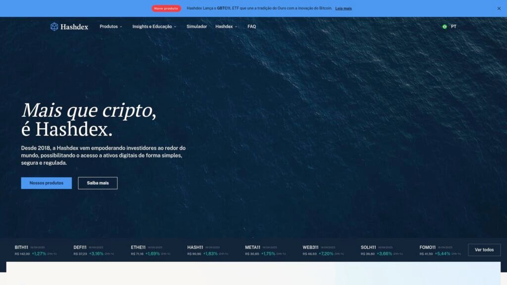 Descrição do site: O site da Hashdex apresenta-se como uma gestora de criptoativos fundada em 2018, que oferece ao investidor amplo leque de produtos financeiros regulados para acessar o mercado de criptomoedas de forma segura e profissional. Ele destaca os ETFs, fundos ativos e passivos, produtos temáticos (como DeFi, Web3, metaverso) integrados à bolsa de valores brasileira (B3) e índices como o Nasdaq Crypto Index (NCI). A plataforma combina ferramentas informativas, simuladores, relatórios e conteúdos educativos com uma interface institucional que reforça disciplina de investimento e governança. Há transparência em relação aos documentos regulatórios, performance passada, fatores de risco, custódia e liquidez dos produtos oferecidos. O site também exibe dados estatísticos sobre o tamanho dos ativos sob gestão, número de investidores, credenciais regulatórias. Por meio de insights, cartas mensais, cursos rápidos e textos especializados, busca auxiliar tanto quem já conhece o universo cripto quanto quem está começando. Em síntese, a Hashdex se coloca como ponte entre o ecossistema tradicional de investimentos e os ativos digitais, oferecendo alternativas reguladas, diversificadas e com respaldo institucional.