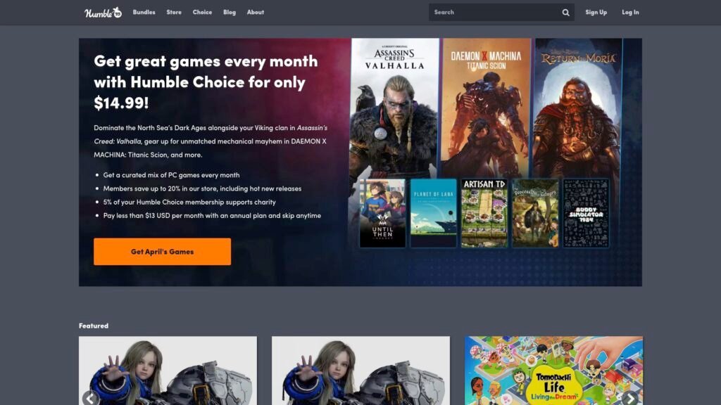 Descrição do site: O site Humble Bundle é uma plataforma de distribuição digital que oferece jogos, softwares, livros e outros conteúdos em formato de pacotes promocionais, conhecidos como “bundles”. Seu principal diferencial é o modelo “pague o quanto quiser”, no qual o próprio usuário define o valor da compra e pode escolher como o dinheiro será dividido entre desenvolvedores, a plataforma e instituições de caridade. A página apresenta ofertas que mudam regularmente, com coleções de produtos vendidas por tempo limitado e geralmente com preços bastante reduzidos em comparação ao mercado tradicional. Além dos bundles, o site também conta com uma loja digital permanente, onde é possível adquirir jogos individualmente. Outro destaque importante é o forte vínculo com ações sociais, já que parte significativa das compras é destinada a organizações beneficentes, somando centenas de milhões de dólares arrecadados ao longo dos anos. A plataforma também oferece um serviço de assinatura mensal, no qual os usuários recebem uma seleção de jogos para manter em sua biblioteca. O site possui interface organizada com categorias como jogos, livros e softwares, além de seções de ofertas e destaques que facilitam a navegação. Também permite integração com plataformas como Steam para ativação dos conteúdos adquiridos. No geral, o Humble Bundle funciona como um hub digital que combina compra de conteúdos com impacto social, oferecendo preços acessíveis, variedade de produtos e a possibilidade de contribuir com causas beneficentes ao mesmo tempo.