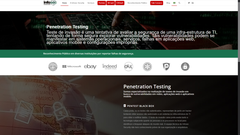 Descrição do site: O site Infosec Security funciona como a vitrine institucional de uma empresa especializada em cibersegurança e consultoria de segurança da informação no Brasil. Nele, a Infosec apresenta seus serviços de proteção digital, como testes de invasão (pentest), análise de vulnerabilidades, auditoria, governança, conformidade com a LGPD e soluções de segurança para redes, aplicações e infraestrutura corporativa. O portal busca mostrar que a segurança da informação deve ser encarada como um investimento estratégico, não apenas técnico — visando reduzir riscos, proteger dados sensíveis e preservar a reputação das empresas. A Infosec combina sua expertise técnica com uma abordagem consultiva: realiza diagnóstico, planejamento, implementação de controles, monitoramento e suporte contínuo conforme o perfil do cliente. Também se destaca pela oferta de “serviços sob medida”, adaptados para empresas de diferentes tamanhos e setores, indo desde pequenas empresas até grandes corporações ou organizações reguladas. Em seu site há explicações sobre os conceitos fundamentais de segurança de dados — confidencialidade, integridade e disponibilidade — e de por que práticas robustas tornam-se essenciais em um contexto de ameaças crescentes no mundo digital. Em síntese, infosec.com.br não é apenas um catálogo de serviços: é uma plataforma de conscientização e orientação em segurança da informação, voltada a ajudar empresas a proteger seus ativos, dados e operações de maneira estruturada e profissional.