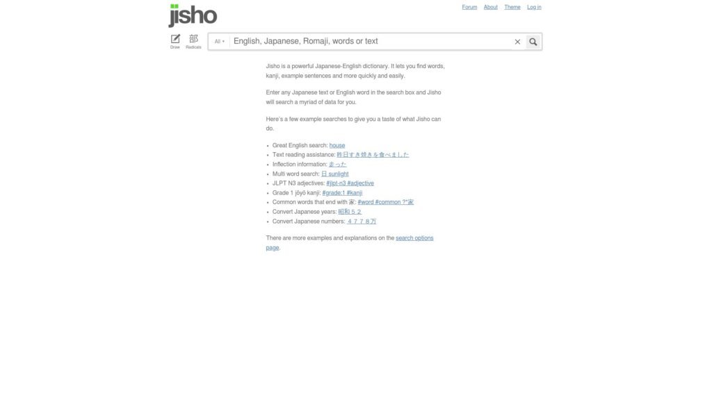 Descrição do site: O Jisho é um dicionário online gratuito focado na língua japonesa, amplamente usado por estudantes de todos os níveis para buscar significados, leituras e traduções entre japonês e inglês. Ele permite pesquisar não só palavras em inglês ou japonês (incluindo kanji e kana), mas também através de romaji, desenho de caracteres e até frases completas, com ferramentas que ajudam no reconhecimento de kanji e na decomposição de sentenças. As entradas costumam trazer definições detalhadas, leis de uso, nível de JLPT, pronúncia com áudio e diagramas de traços para os caracteres, o que torna o site um recurso valioso tanto para iniciantes quanto para usuários mais avançados. A interface é simples e direta, o que facilita consultas rápidas durante estudo ou tradução. Apesar de algumas críticas pontuais sobre a precisão de certos exemplos ou nuances, Jisho é considerado uma das ferramentas de referência mais populares e úteis para aprender japonês na web.