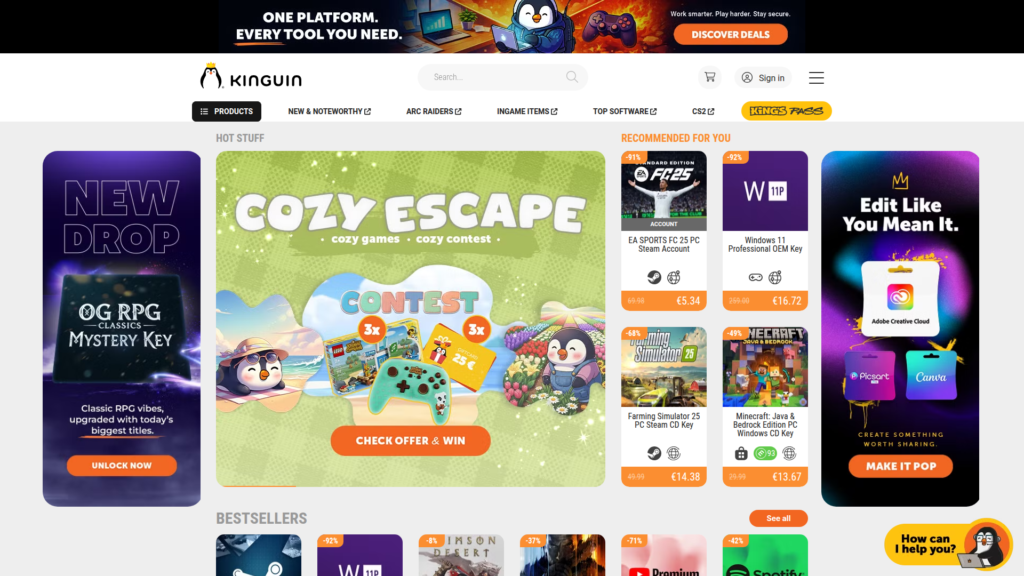 Descrição do site: O site Kinguin é uma plataforma global de comércio digital voltada principalmente para a compra e venda de jogos eletrônicos, softwares e conteúdos digitais. Diferente de lojas tradicionais, ele funciona como um marketplace, onde diversos vendedores independentes oferecem chaves digitais (keys) para ativação em plataformas como Steam, Xbox, PlayStation e outras. A página reúne um grande catálogo com jogos, DLCs, assinaturas, moedas virtuais e até softwares, geralmente com preços mais baixos que os praticados em lojas oficiais. Esse modelo permite ao usuário comparar ofertas entre diferentes vendedores e escolher a opção mais vantajosa. A entrega dos produtos costuma ser rápida, com códigos digitais disponibilizados logo após a confirmação do pagamento. Outro ponto relevante é que a plataforma atua como intermediadora das transações, oferecendo sistemas de proteção ao comprador e verificação de vendedores, embora a responsabilidade pela venda seja de terceiros. O site também conta com avaliações de usuários, ajudando a identificar vendedores mais confiáveis dentro do marketplace. No geral, o Kinguin funciona como um hub internacional para compra de jogos e softwares com preços competitivos, destacando-se pela variedade de ofertas e pela proposta de economia, mas exigindo atenção do usuário na escolha dos vendedores e produtos dentro da plataforma.