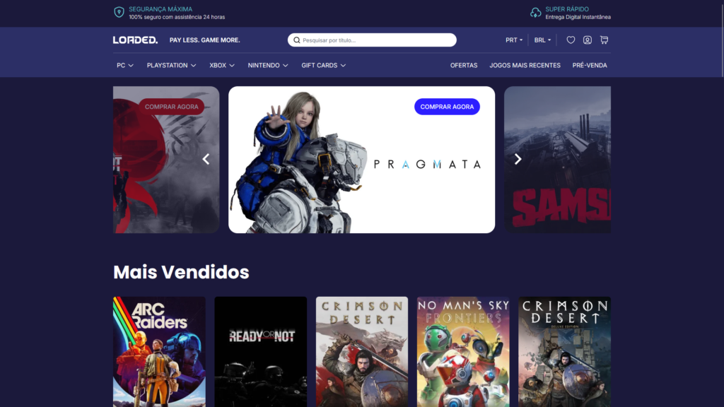 Descrição do site: O site Loaded é uma plataforma internacional de comércio digital especializada na venda de jogos eletrônicos e conteúdos relacionados, funcionando como uma loja online de chaves (keys) para diversas plataformas. O portal oferece um catálogo amplo com mais de milhares de títulos para PC, PlayStation, Xbox e Nintendo, incluindo lançamentos, clássicos e jogos independentes. A proposta do site é disponibilizar jogos a preços mais acessíveis por meio de códigos digitais que podem ser ativados nas plataformas oficiais, eliminando a necessidade de mídia física. A entrega é feita de forma instantânea, geralmente por e-mail ou área do usuário, permitindo acesso rápido ao conteúdo após a compra. Além de jogos, a plataforma também comercializa assinaturas, gift cards, moedas virtuais e recargas para diferentes serviços digitais, ampliando suas opções para o público gamer. O site destaca promoções frequentes e descontos significativos, sendo esse um dos principais atrativos para os usuários. Outro ponto relevante é a presença global da empresa, com atendimento a milhões de clientes ao redor do mundo e suporte contínuo, além de compatibilidade com diversos métodos de pagamento. A interface é organizada por categorias como jogos, ofertas, assinaturas e cartões-presente, facilitando a navegação. No geral, o Loaded funciona como um hub digital para compra de jogos e conteúdos online, focado em praticidade, preços competitivos e entrega imediata, sendo uma alternativa popular para quem busca economia na aquisição de jogos digitais.