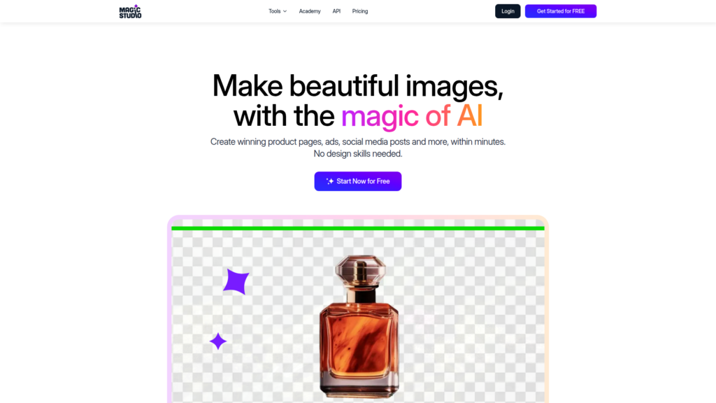 Descrição do site: O site Magic Studio é a página oficial de uma plataforma de edição e criação de imagens com inteligência artificial que facilita a produção de visuais profissionais sem necessidade de habilidades avançadas em design ou softwares complexos, permitindo que usuários removam objetos, alterem fundos, ajustem cenários e gerem imagens a partir de textos simples. A interface funciona como um estúdio visual completo, com ferramentas como Magic Eraser para apagar elementos indesejados, Background Remover para trocar planos de fundo, Image Upscaler para aumentar a resolução e geradores de arte e imagens em IA que transformam descrições em resultados visuais rapidamente. Voltado tanto para criadores independentes quanto para negócios que precisam de conteúdos para redes sociais, anúncios e e-commerce, o site oferece funções gratuitas com limitações e planos pagos com capacidades expandidas, como exportação em alta resolução e edições sem marca d’água. A experiência é pensada para ser acessível e intuitiva, com modelos e fluxos que permitem criar e editar imagens em poucos cliques, além de uma API para integrar as ferramentas em aplicações próprias. A plataforma tem milhões de usuários e uma reputação geralmente positiva como solução de IA para edição visual simplificada.