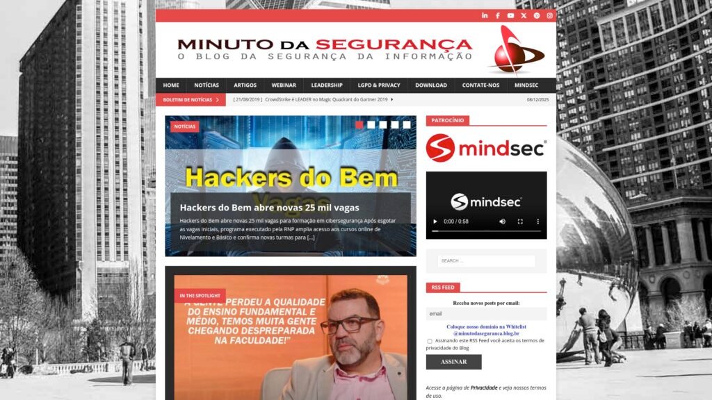 Descrição do site: O site Minuto da Segurança funciona como um blog de referência dedicado a trazer notícias, artigos e análises atualizadas sobre segurança da informação e cibersegurança. Ele reúne conteúdos que vão desde alertas sobre vulnerabilidades, ataques cibernéticos e tendências em segurança digital até discussões sobre governança, privacidade e uso de tecnologia em empresas e instituições. O Minuto da Segurança é mantido pela MindSec Segurança e Tecnologia da Informação, o que aponta para um viés profissional: o blog parece pensado tanto para profissionais da área quanto para interessados em entender riscos e boas práticas de proteção de dados. Apesar de já ter enfrentado incidentes — como um ataque cibernético que interferiu na integridade de parte do site — o blog comunicou o ocorrido com transparência, reforçando seu compromisso com a segurança, a confiabilidade e a qualidade da informação transmitida. Ao longo dos anos, publicou centenas de artigos, trouxe webinars e relatórios — com o objetivo de centralizar e facilitar o acesso a conteúdo relevante, sem depender do leitor “garimpar” notícias isoladas pela internet. Em resumo, o Minuto da Segurança é um portal informativo sério e focado em cibersegurança, que busca manter sua audiência — desde profissionais até entusiastas — atualizada sobre ameaças, tendências e melhores práticas de proteção digital, com comprometimento ético e transparência editorial.