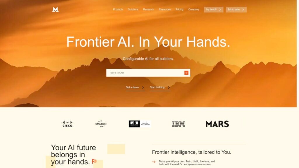 Descrição do site: O site da Mistral AI oferece uma visão clara e envolvente de sua plataforma de inteligência artificial de ponta, destacando soluções com foco empresarial, personalização e implantação flexível. Nele, a empresa se apresenta como uma startup pioneira em IA — fundada em Paris em abril de 2023 por ex-pesquisadores do DeepMind e da Meta — cujo objetivo é tornar modelos avançados de linguagem acessíveis, eficientes e abertos. No portal, o visitante encontra uma proposta robusta: “train, distill, fine-tune, and build with the world’s best open-source models”, ou seja, construir e customizar IA com transparência e controle total. A plataforma destaca agentes de IA, assistentes multimodais e APIs de código que atendem a diversos contextos — desde automação e pesquisa até colaboração empresarial e análise de documentos. A estética do site combina profissionalismo com acessibilidade, usando linguagem direta como “enterprise-grade”, “agent-ready” e “multilingual, multimodal AI assistant” para transmitir versatilidade e segurança. No rodapé e nas seções institucionais, deixa evidente a ambição de empoderar empresas, pesquisadores e desenvolvedores com ferramentas confiáveis e escaláveis, mantendo a privacidade e modularidade como pilares centrais. Em essência, a Mistral AI se posiciona como a porta de entrada para quem busca explorar, integrar e controlar a IA de forma sofisticada e independente.