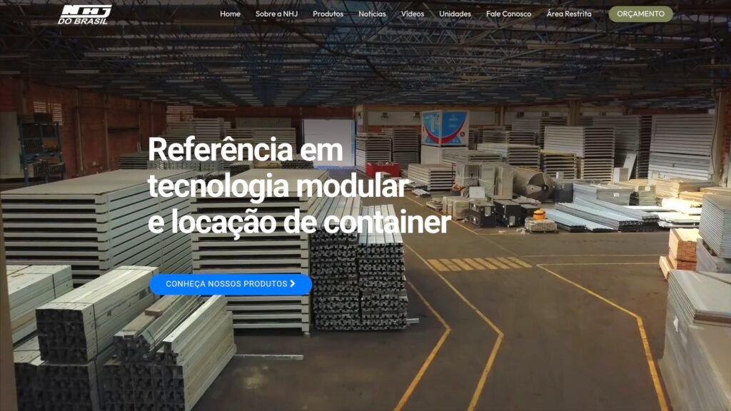 Descrição do site: A NHJ do Brasil é uma empresa brasileira com mais de 30 anos de atuação especializada na venda e locação de containers marítimos e soluções em tecnologia modular para espaços temporários ou permanentes, atendendo diversos setores como comércio, saúde, educação, eventos e construção civil. Ele oferece informações institucionais sobre a empresa, sua história, missão, visão e valores, além de destacar produtos e serviços disponíveis para diferentes aplicações. O portal inclui notícias recentes sobre conquistas e ações da empresa, detalhes de unidades e canais de atendimento, e possibilita a solicitação de orçamentos diretamente online. Há também áreas dedicadas ao cliente, fornecedores e políticas de privacidade com explicações sobre o tratamento de dados pessoais conforme a LGPD. Recursos como Canal de Denúncias e Compliance reforçam transparência e ética corporativa, e o site facilita contato para orçamentos, suporte e oportunidades de emprego.