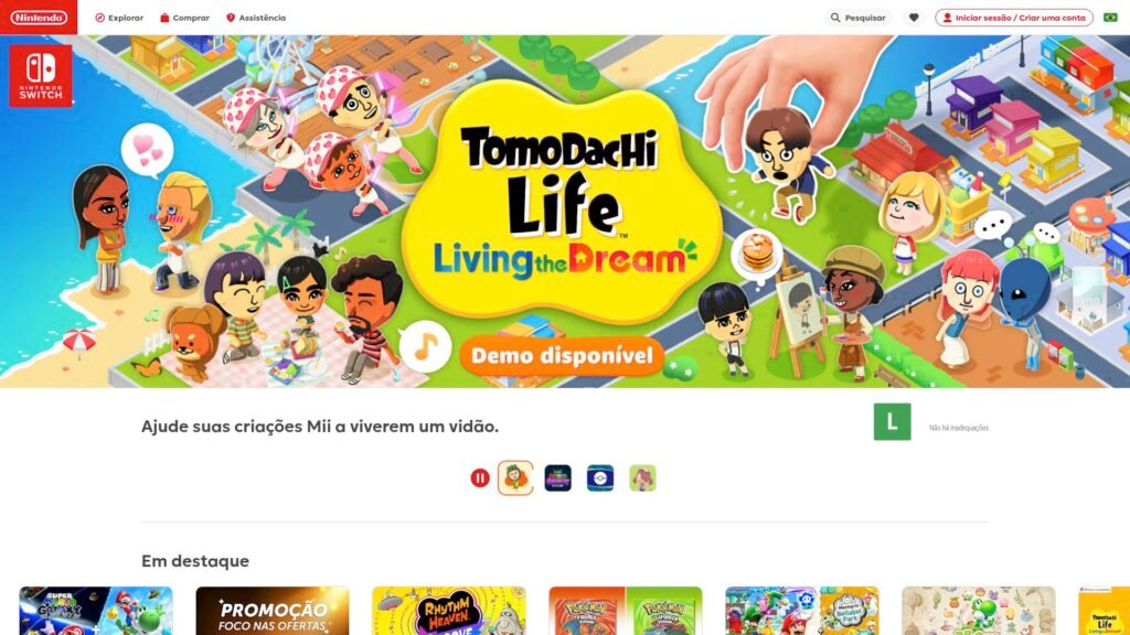 Descrição do site: O site da Nintendo é a plataforma oficial da empresa para o público brasileiro, reunindo informações sobre seus jogos, consoles e serviços digitais em um único ambiente. A página destaca principalmente o ecossistema do Nintendo Switch, apresentando lançamentos, jogos mais vendidos e novidades do universo da marca. Além disso, o site funciona como uma vitrine digital, onde os usuários podem explorar títulos populares, acessar a loja online e adquirir conteúdos diretamente pela eShop. O portal também oferece informações sobre serviços como o Nintendo Switch Online, que permite jogar online, acessar jogos clássicos e obter benefícios exclusivos. Outro destaque é a seção de notícias, que mantém os usuários atualizados sobre lançamentos, eventos e atualizações importantes do mundo Nintendo. A interface é visualmente atrativa e organizada por categorias como jogos, consoles e ofertas, facilitando a navegação e a descoberta de conteúdos. O site ainda inclui informações institucionais, suporte ao usuário e opções de compra de cartões presente digitais. No geral, o site funciona como um hub oficial completo da Nintendo no Brasil, conectando jogadores a jogos, serviços e novidades, além de servir como porta de entrada para todo o ecossistema da marca.