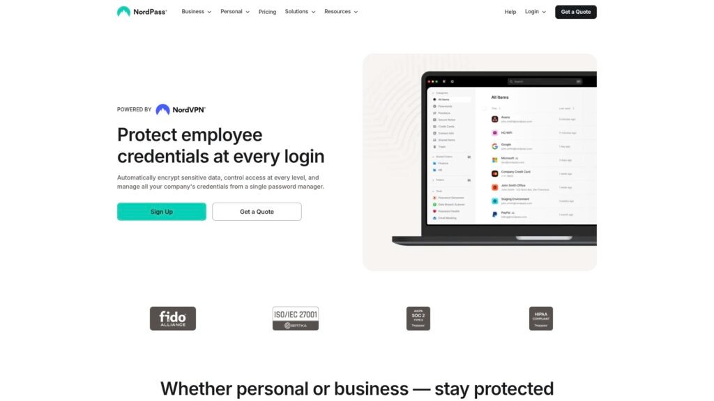 Descrição do site: O site da NordPass posiciona‑se como uma plataforma moderna de gestão segura de credenciais, oferecendo funções que vão além do simples armazenamento de senhas, como alertas de vazamento na dark web, mascaramento de e‑mail e políticas sob medida para equipes corporativas. A arquitetura “zero‑knowledge” garante que apenas o usuário possa acessar seus dados, enquanto criptografia ponta a ponta com algoritmos robustos (como o XChaCha20) reforça sua confiabilidade. Em sua interface, o usuário encontra recursos intuitivos, sincronização entre dispositivos, integração com provedores de identidade e centralização em painéis administrativos para ambientes empresariais. O site destaca sua credibilidade por meio de auditorias externas, prêmios e uso de infraestrutura reconhecida, além de oferecer conteúdos educativos, casos de uso e ferramentas gratuitas como gerador de senhas e verificador de vazamentos. A estrutura visual privilegia clareza e navegação fluida, facilitando a compreensão das ofertas pessoais e corporativas, bem como o acesso a suporte, demonstrações e planos disponíveis.