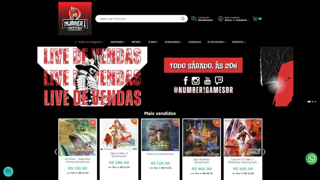 Descrição do site: O site da Number1Games é uma loja virtual brasileira especializada na venda de jogos eletrônicos, consoles e acessórios, com forte foco em produtos retrô e clássicos. A plataforma apresenta um catálogo diversificado que inclui títulos para videogames antigos como Dreamcast, Master System e PlayStation 2, além de jogos mais recentes para consoles atuais. Um dos principais diferenciais do site é justamente a presença de jogos antigos e itens voltados a colecionadores, atendendo um público nostálgico e entusiasta do retrogaming. A loja também disponibiliza categorias organizadas como Nintendo, PlayStation, Xbox, portáteis e acessórios, facilitando a navegação do usuário. Além disso, o site oferece consoles, action figures e outros itens relacionados ao universo gamer, ampliando as opções de compra para diferentes perfis de clientes. Os produtos podem ser adquiridos com opções de parcelamento e promoções ocasionais, tornando o acesso mais flexível. A interface é simples e funcional, com destaque para seções como “mais vendidos” e ofertas, que ajudam o usuário a descobrir itens populares. Também há sistema de conta, carrinho de compras e contato direto com a loja, indicando um modelo tradicional de e-commerce. No geral, o site funciona como uma loja online voltada tanto para gamers atuais quanto para colecionadores, reunindo jogos clássicos e modernos em um único ambiente digital, com ênfase especial no mercado retrô.