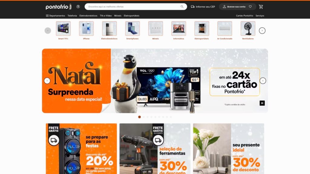 Descrição do site: O Pontofrio é o e-commerce oficial da rede varejista brasileira Pontofrio, uma das marcas tradicionais de varejo no Brasil com décadas de atuação nas vendas de eletrodomésticos, eletrônicos, móveis e itens de tecnologia, integrando suas operações físicas e digitais em um grande marketplace com catálogo variado e ofertas para todo o país. O site pertence à CNOVA Comércio Eletrônico S.A. e está ativo há quase 30 anos, oferecendo categorias que vão desde eletrodomésticos e celulares até móveis e produtos de informática, com opções de pagamento parcelado, promoções sazonais e entregas em diversas localidades. A plataforma funciona tanto com produtos vendidos diretamente quanto através de vendedores parceiros, o que amplia a gama de itens disponíveis e reflete a estratégia de marketplace adotada pela marca. Apesar de ser uma loja conhecida e de grande porte, as avaliações de consumidores em plataformas como o Reclame Aqui mostram uma reputação regular, com relato de algumas reclamações sobre entregas e atendimento, embora muitas sejam respondidas e resolvidas pela empresa. O site utiliza conexão segura (HTTPS) e busca oferecer uma experiência de compra completa, incluindo descontos em datas promocionais como Black Friday e campanhas de cupons. Em suma, o domínio representa a presença digital consolidada de uma marca tradicional do varejo brasileiro voltada para consumidores que buscam uma ampla variedade de produtos para casa, tecnologia e bem-estar.