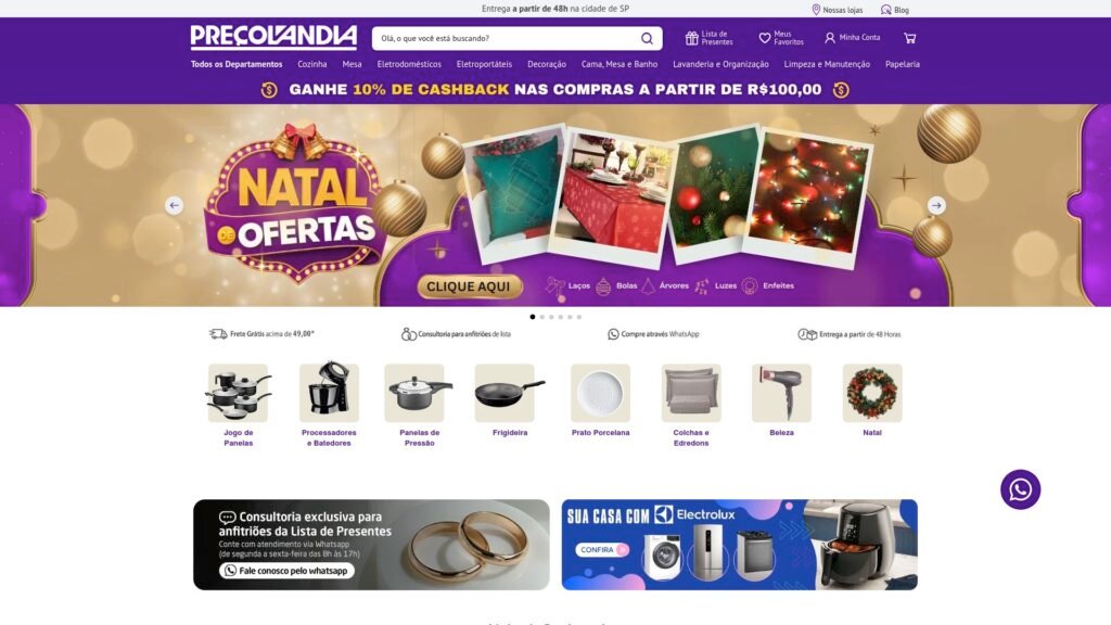 Descrição do site: Site oficial da Preçolândia, uma rede varejista brasileira com longa história e atuação principalmente no segmento de utilidades domésticas, itens para casa como cama, mesa e banho, eletrodomésticos, presentes e decoração, também disponível para compras pela internet. A Preçolândia começou como uma loja física no Estado de São Paulo e ao longo das décadas ampliou sua operação, incluindo um e-commerce com catálogo de milhares de produtos e opções de pagamento diversas. No portal os consumidores podem navegar pelas categorias de produtos para o lar, verificar preços e promoções e fazer compras online com entrega em domicílio, além de acessar serviços como a tradicional lista de casamento que já foi um dos destaques da marca. A plataforma utiliza conexão segura (HTTPS) e a empresa possui reputação considerada boa no Reclame Aqui, com maioria das reclamações respondidas e solucionadas, embora ocorram relatos variados sobre experiência de compra e atendimento. A Preçolândia também mantém presença física em várias cidades com lojas de grande porte e continua investindo na integração entre seu varejo tradicional e a loja online para oferecer conveniência ao cliente. Em suma, o site funciona como uma extensão digital de uma rede de varejo consolidada no Brasil, especializada em artigos para casa e utilidades, com foco em variedade e acessibilidade ao consumidor.