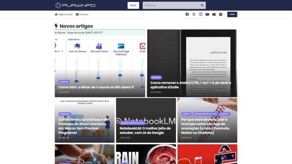 Descrição do site: O site Purainfo é um portal de conteúdo em português voltado à tecnologia, software e dicas de informática, tendo se originado em 2007 como um blog pessoal com resumos de faculdade e artigos didáticos. Com o tempo, evoluiu e hoje conta com colaboradores que produzem artigos sobre infraestrutura de TI, Linux, scripts, segurança digital, programas e ferramentas úteis para usuários e profissionais da área. A linguagem se mantém acessível, mantendo um equilíbrio entre conteúdo mais técnico e explicações pensadas para quem não é especialista — o que torna o site apropriado tanto para estudantes quanto para quem deseja se manter atualizado em tecnologia de forma prática. Dentre os temas abordados estão tutoriais, revisões de programas e discussões sobre ferramentas e aplicativos, sempre com o intuito de facilitar o uso cotidiano da tecnologia. A proposta do Purainfo é manter viva a essência de um blog de aprendizado, onde a troca de conhecimento e a produção de conteúdo relevante e útil são prioridades. Em resumo, o Purainfo funciona como um ponto de encontro digital para quem quer aprender sobre TI, sistemas operacionais, ferramentas úteis e boas práticas de uso, com conteúdo atualizado e de fácil compreensão.