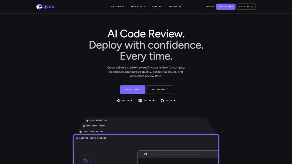 Descrição do site: A Qodo é uma plataforma empresarial de inteligência artificial voltada para automatizar e aprimorar a qualidade do desenvolvimento de software, oferecendo revisão de código com IA que entende profundamente o contexto de bases de código complexas em tempo real enquanto os desenvolvedores trabalham em seus editores de código, IDEs e fluxos de trabalho de Git. Através de agentes inteligentes especializados, a ferramenta detecta bugs, lacunas lógicas, questões de conformidade e padrões de codificação, sugere correções e ajuda a reduzir gargalos no processo de revisão tradicional, além de apoiar na geração de testes e documentação. Projetada para equipes de engenharia que lidam com longos ciclos de desenvolvimento e grandes bases de código, a plataforma integra-se com ambientes populares como Visual Studio Code, JetBrains, GitHub e GitLab, padronizando qualidade e segurança em cada etapa do ciclo de vida do software. No site é possível encontrar informações sobre os recursos, integrações com ferramentas corporativas, estudos e relatórios sobre qualidade de código e a possibilidade de agendar demonstrações para entender melhor a solução. A Qodo, anteriormente conhecida como CodiumAI, destaca-se por seu enfoque em inteligência de contexto e em manter altos padrões técnicos em ambientes de desenvolvimento modernos.