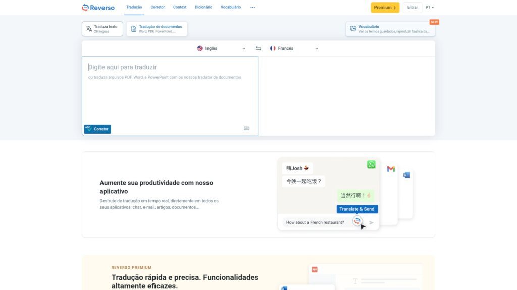 Descrição do site: O site Reverso é uma plataforma online abrangente de tradução e ferramentas linguísticas que combina tradução automática baseada em inteligência artificial com dicionários contextuais, correção gramatical e recursos adicionais para apoiar o aprendizado de línguas e a comunicação entre idiomas. Ele permite traduzir textos diretamente no navegador ou documentos inteiros mantendo o formato original, oferecendo exemplos de uso em contexto que ajudam a entender nuances e escolhas de tradução reais. A página integra também dicionários com sinônimos, conjugações verbais e pronúncias em áudio, enriquecendo a experiência de quem estuda ou trabalha com idiomas. As funcionalidades incluem ainda criação de listas de vocabulário, flashcards e sugestões que facilitam memorizar e praticar novas palavras ou expressões. Ferramentas como correção ortográfica automática e integração com aplicações móveis ampliam o uso para além de simples tradução, transformando o site num recurso versátil tanto para consultas rápidas quanto para estudos mais profundos. A interface é simples e acessível, adequada a iniciantes e usuários avançados buscando traduções mais naturais e contextualizadas. No conjunto, Reverso é reconhecido como uma ferramenta útil para aprender, traduzir e melhorar o domínio de diversas línguas.