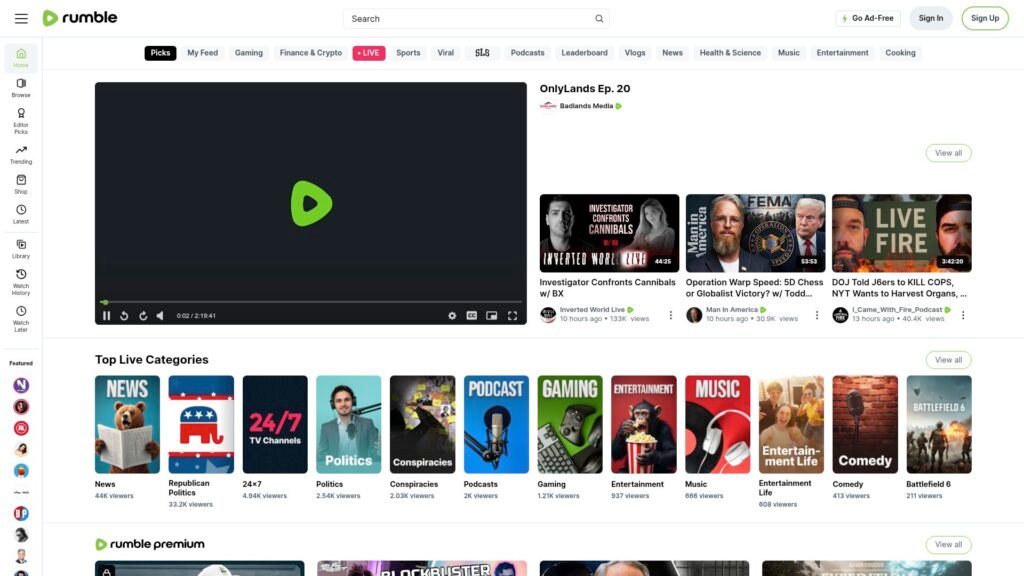 Descrição do site: O Rumble é uma plataforma de compartilhamento de vídeos que se define como um espaço dedicado à expressão autêntica, com foco em liberdade criativa e monetização direta para pequenos criadores. Fundado em 2013 por Chris Pavlovski, o site rapidamente conquistou destaque como uma alternativa ao YouTube, especialmente entre públicos conservadores e criadores que se sentiam censurados em outras plataformas. Sua interface apresenta recomendações de canais, uma aba de “ganhos” e mecanismos que permitem ao usuário lucrar com seus vídeos por meio de licenciamento para parceiros como Microsoft News ou Yahoo!. A plataforma teve um crescimento explosivo durante a pandemia, saltando de 1,6 milhão para cerca de 32 milhões de usuários ativos mensais no início de 2021, impulsionada por investimentos de figuras como Peter Thiel e J.D. Vance. Sua política de moderação é menos rigorosa que a de concorrentes, construindo reputação como um refúgio para vozes controversas — o que atrai discussões sobre desinformação e discursos extremistas. Com uma estrutura baseada em software próprio, serviços de nuvem, publicidade independente e recentemente expansão para podcasting, o Rumble busca se consolidar como uma rede neutra e autossustentável no segmento de vídeos e mídia alternativa.