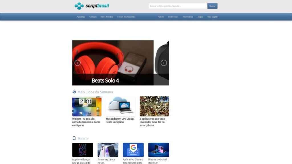 Descrição do site: O site Script Brasil funciona como uma comunidade de longa data voltada a programadores e entusiastas de tecnologia, reunindo um extenso acervo de scripts, tutoriais, apostilas e layouts gratuitos para as mais diversas linguagens de programação e necessidades de desenvolvimento. Ele oferece fóruns ativos onde usuários trocam dúvidas, compartilham soluções e colaboram com código — contemplando desde linguagens como PHP, Java, C/C++ até web, banco de dados e design, promovendo aprendizado colaborativo. A comunidade tem participação expressiva, com centenas de milhares de posts e milhares de desenvolvedores registrados, o que mostra a relevância e o alcance da plataforma. Além de código, o site disponibiliza apostilas completas sobre banco de dados, linguagens e ferramentas, tornando-se um recurso valioso para quem está aprendendo ou deseja aprimorar seus conhecimentos em TI. Com linguagem em português, Script Brasil facilita o acesso a conteúdo técnico para falantes da língua, e busca democratizar o acesso a informação e recursos de programação. Em resumo, é um portal de referência — um ponto de encontro digital — para quem estuda, trabalha ou tem interesse em desenvolvimento de software, programação e tecnologia, oferecendo tanto base para aprendizado quanto espaço de colaboração e trocas técnicas.