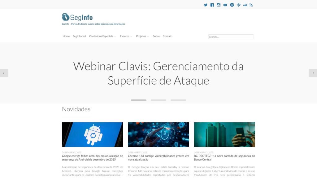 Descrição do site: O site SegInfo é uma plataforma brasileira focada em fornecer notícias, análises e informações sobre segurança da informação e cibersegurança. Ele aborda temas como ataques cibernéticos, vulnerabilidades, novas tecnologias de proteção e as melhores práticas para manter dados e sistemas seguros. O conteúdo é voltado tanto para profissionais da área de TI quanto para o público geral, oferecendo artigos, reportagens e estudos sobre o cenário da segurança digital no Brasil e no mundo. O site também disponibiliza análises de incidentes recentes e tendências de segurança, além de promover discussões sobre políticas de proteção e privacidade. Com uma abordagem atualizada e acessível, o SegInfo se tornou uma referência para aqueles que buscam se informar sobre ameaças digitais e como preveni-las.