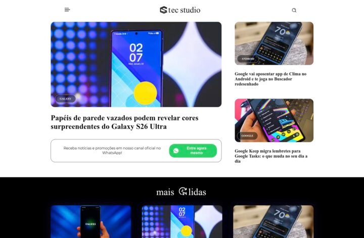 Descrição do site: O TecStudio é um portal brasileiro focado em notícias, análises e tendências no universo da tecnologia. O site cobre uma ampla gama de tópicos, incluindo smartphones, gadgets, inovações tecnológicas, software, segurança digital e muito mais. Além disso, oferece conteúdos como tutoriais, dicas e comparações de produtos, ajudando seus leitores a tomar decisões mais informadas sobre suas compras e atualizações tecnológicas. A plataforma se destaca pela abordagem clara e acessível, buscando atingir tanto entusiastas da área quanto o público geral. Com uma interface moderna e fácil de navegar, o TecStudio também mantém seus leitores atualizados sobre os lançamentos mais recentes e novidades do mercado. Seu conteúdo é atualizado regularmente, proporcionando uma fonte confiável para quem quer se manter por dentro das últimas novidades no mundo da tecnologia.