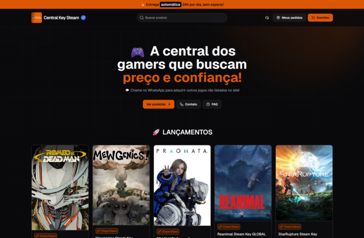 Descrição do site: O site Central Key Steam funciona como uma loja virtual de jogos digitais focada na venda de chaves (keys) para ativação na plataforma Steam. A página destaca a proposta de oferecer jogos a preços acessíveis, com categorias como lançamentos, mais vendidos e tendências para facilitar a navegação. Um dos principais atrativos é a promessa de entrega automática 24 horas por dia, permitindo que o usuário receba o código logo após a confirmação do pagamento. O modelo de funcionamento é baseado na venda de códigos digitais que podem ser ativados diretamente na conta do usuário, garantindo acesso permanente ao jogo adquirido. O site afirma que as keys são originais, com suporte ao cliente e garantia em caso de problemas na ativação. Além disso, o processo de compra é simples e inclui métodos populares como PIX e cartão, com envio automático por e-mail ou na área do cliente. A plataforma é hospedada na infraestrutura da CentralCart, um sistema de e-commerce voltado para produtos digitais com entrega automatizada. Isso explica a estrutura simples do site, focada em rapidez e praticidade na compra. Em relação à confiabilidade, análises técnicas indicam sinais positivos, como uso de certificado SSL e ausência de detecções de malware, embora recomendem cautela e verificação adicional antes de comprar. De modo geral, o site se posiciona como uma alternativa econômica para aquisição de jogos digitais, mas exige atenção do usuário quanto à procedência e reputação do serviço.