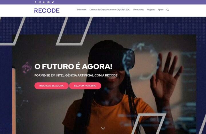 Descrição do site: O site da Recode apresenta-se como uma plataforma dedicada ao ensino de inteligência artificial e tecnologia com foco social, oferecendo formações online gratuitas ou de baixo custo que visam ampliar oportunidades para jovens e profissionais. Ele destaca-se por adotar uma metodologia prática com mentoria, certificação e aplicação real em projetos de impacto, enfatizando valores como inclusão, ética e responsabilidade na tecnologia. A navegação permite explorar diferentes trilhas de aprendizagem como “Gestão de Projetos e Aplicativos de Impacto”, “Escola de Prompts” e “Marketing Inteligente com IA”, com detalhes sobre módulos, perfis de saída e público-alvo. Há também informações sobre o impacto da organização — milhares de pessoas alcançadas em diversos estados brasileiros e países — e uma seção para empresas parceiras interessadas em apoiar ou participar dos programas. O rodapé oferta transparência sobre cookies, privacidade e contatos institucionais, reforçando uma postura aberta e profissional. Em resumo, o site funciona como porta de entrada não apenas para cursos, mas para uma comunidade que busca usar a tecnologia para transformação social.