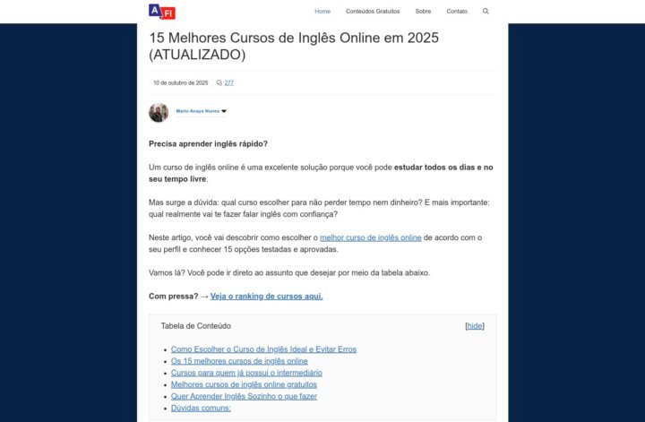 Descrição do site: O site Aprenda Falar Inglês oferece uma plataforma focada no ensino de inglês de forma prática e acessível. Ele disponibiliza cursos online voltados para todos os níveis, desde iniciantes até alunos avançados, com foco no desenvolvimento da conversação. A metodologia é centrada na prática, proporcionando exercícios, vídeos, áudios e atividades interativas que estimulam a comunicação real. O site também destaca a importância do aprendizado de vocabulário e pronúncia, buscando proporcionar uma experiência imersiva. Além disso, os usuários podem acompanhar seu progresso e acessar materiais complementares para aprofundar o aprendizado. É uma opção para quem deseja aprender inglês de forma autônoma, com flexibilidade de horários.
