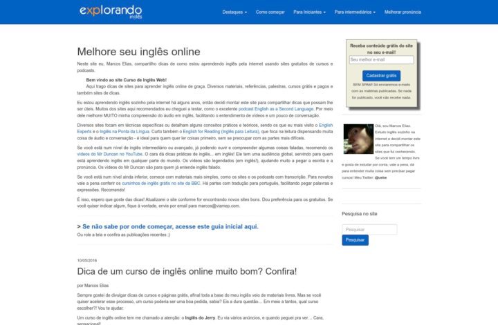 Descrição do site: O site Explorando Inglês oferece uma abordagem prática e acessível para quem deseja aprender ou aprimorar o inglês. Ele disponibiliza diversas ferramentas e recursos, como vídeos, artigos e exercícios interativos, que ajudam o usuário a desenvolver habilidades nas áreas de vocabulário, gramática, leitura e escuta. A plataforma se destaca por sua interface simples e intuitiva, tornando o processo de aprendizado mais fluido e dinâmico. Além disso, o conteúdo é estruturado de forma a atender tanto iniciantes quanto pessoas em níveis mais avançados, permitindo um progresso gradual. O site também proporciona uma maneira de estudar no próprio ritmo do aluno, oferecendo flexibilidade e autonomia.
