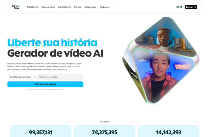 Descrição do site: O site HeyGen é a plataforma oficial de um gerador de vídeos com inteligência artificial que transforma textos, imagens, áudios e roteiros em vídeos completos com avatares realistas, vozes naturais e sincronização labial automática, sem necessidade de câmera ou edição tradicional. Ele oferece ferramentas para criar vídeos profissionais usados em marketing, treinamento, vendas e redes sociais, suportando mais de 170 idiomas e dialetos e permitindo personalizar gestos, expressões e elementos visuais conforme a identidade da marca. A interface inclui um estúdio de edição baseado em texto que torna o processo intuitivo mesmo para iniciantes, além de recursos colaborativos, gestão de marca e integração com fluxos de trabalho existentes. Usuários podem gerar conteúdos desde explicações e demonstrações até traduções de vídeos com adaptação de lábios e voz, acelerando a produção de conteúdo audiovisual em larga escala. Embora muitos elogiem a facilidade de uso e a amplitude de funcionalidades, há relatos de feedback misto sobre o sistema de créditos, limite de recursos e suporte ao cliente que sugerem cautela na avaliação de planos pagos.