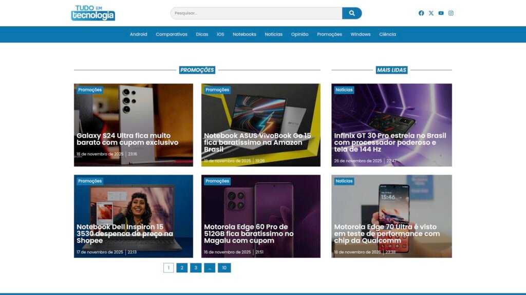 Descrição do site: O site Tudo em Tecnologia se define como um portal dedicado a notícias, análises, reviews e promoções voltadas ao universo de gadgets — como smartphones, notebooks, tablets e acessórios — com o objetivo de manter os leitores informados de forma clara e acessível. Ele aborda lançamentos, rumores, comparativos e ofertas de produtos de tecnologia, ao mesmo tempo em que compartilha conteúdo prático e atual sobre mercado de eletrônicos e tendências digitais. Embora atue como intermediário de divulgação, o site deixa claro que não realiza vendas diretas: ao clicar em promoções, o usuário é redirecionado para lojas parceiras, e a negociação final é entre comprador e loja. A proposta editorial aposta em agilidade e formato de fácil leitura, com foco em novidades e utilidade para quem acompanha tecnologia com interesse em consumo e atualização de mercado. Esse caráter de “guia de gadgets” traz uma mescla de jornalismo de tecnologia, curadoria de ofertas e conteúdo de consumo, fazendo do Tudo em Tecnologia uma alternativa para quem quer estar por dentro do que há de novo no mundo dos eletrônicos no Brasil.